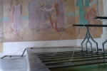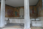 Plätschernder Brunnen, in einer Gebäudenische, was den Klang hallen lässt.