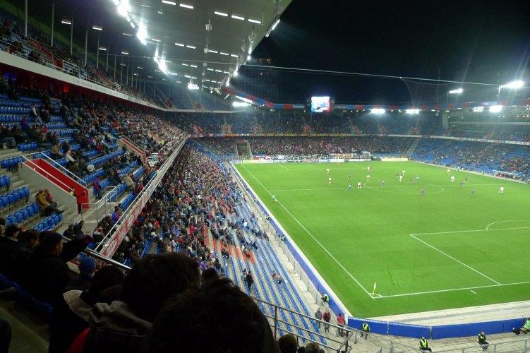 Die Fans feuern den FC Basel an mit «allez allez FCB!». Nach einer Fehlentscheidung des Schiedsrichters schreit das ganze Stadion «Hey» und protestiert mit «Wär nit gumpt dä isch kai Basler» (wer nicht springt, der ist kein Basler).